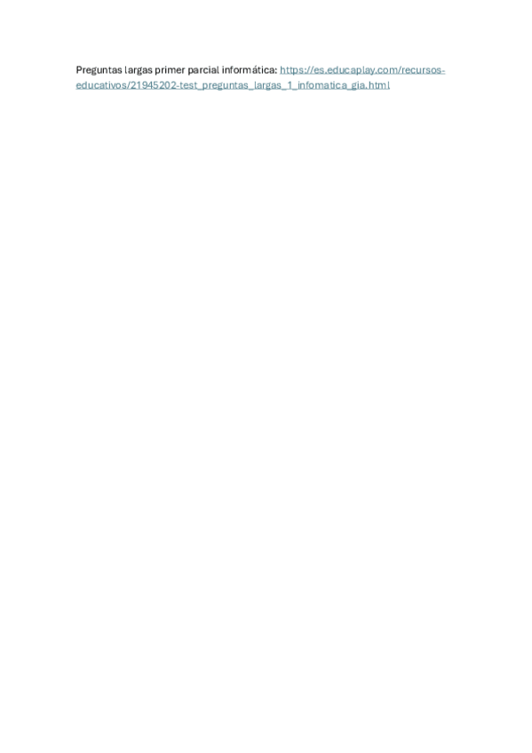 Enlace para practicar test del primer parcial de informática online interactivo. PREGUNTAS CORTAS