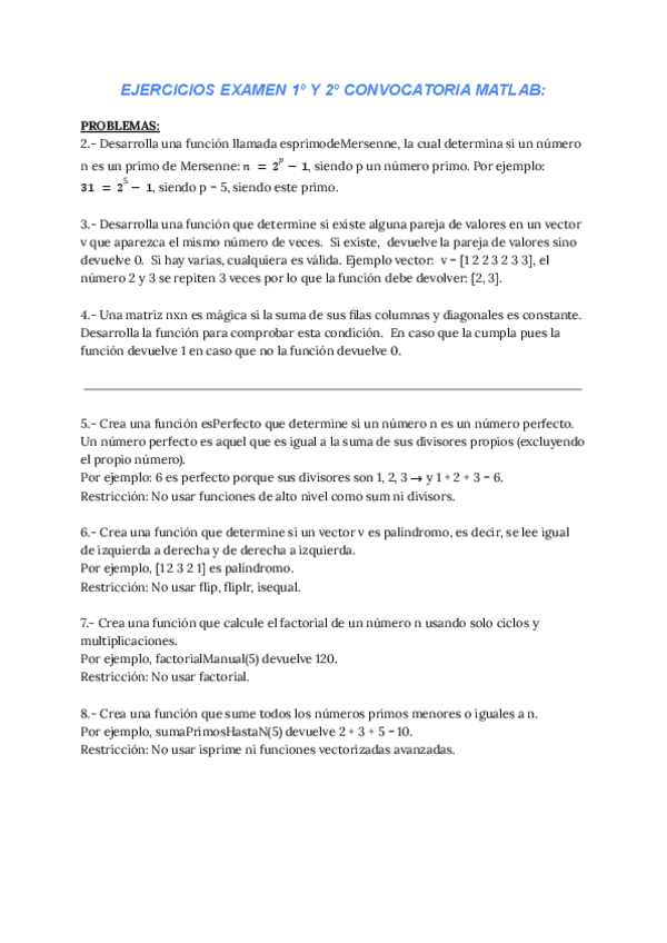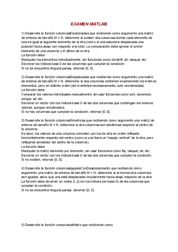 EJERCICIOS EXAMEN MATLAB
