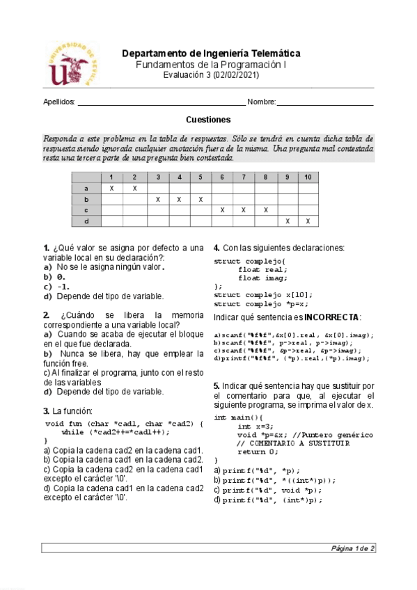 Exámenes de cursos anteriores