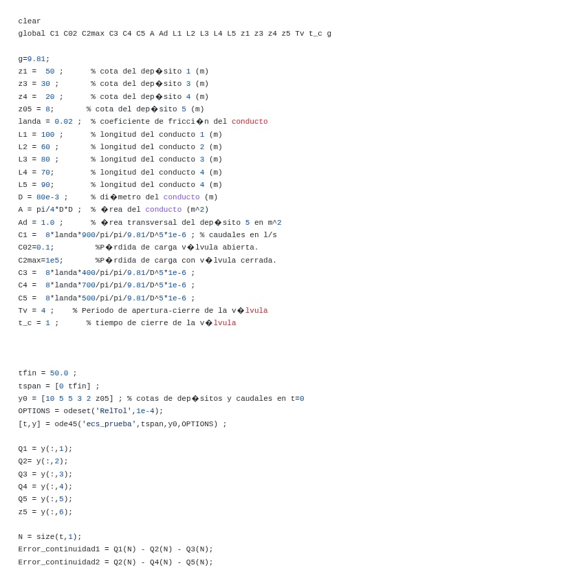 Practica de Matlab calculo hidraulico