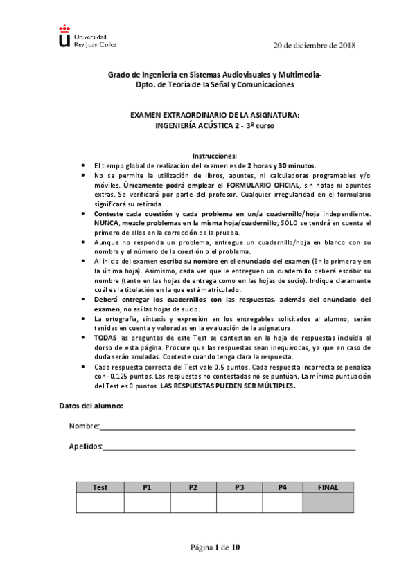 He publicado nuevos examenes de 3º Ingeniería Acústica II: Junio 2018 corregido.pdf