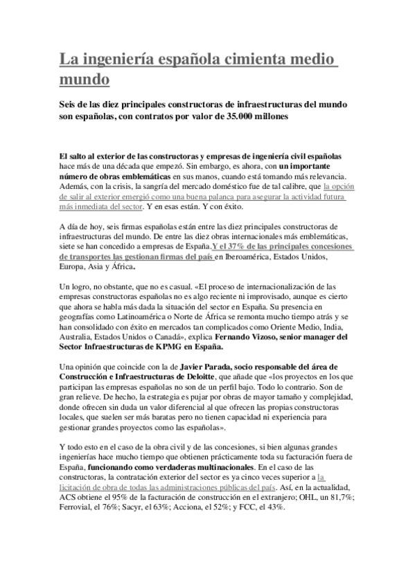He publicado nuevos apuntes de 3º Ingeniería Civil y Medio Ambiente: La ingeniería española cimienta medio mundo.doc