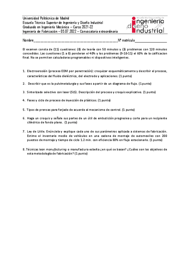 He publicado nuevos examenes de 4º Ingenieria de Fabricación: EXAMENES 2022