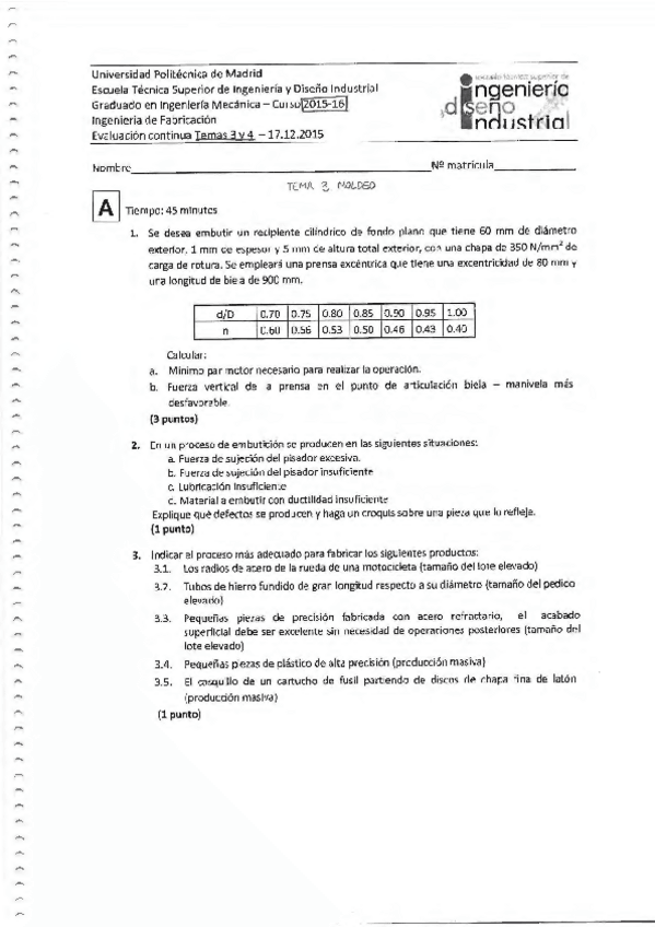 He publicado nuevos examenes de 4º Ingenieria de Fabricación: Examen1ParcialIngFab.pdf
