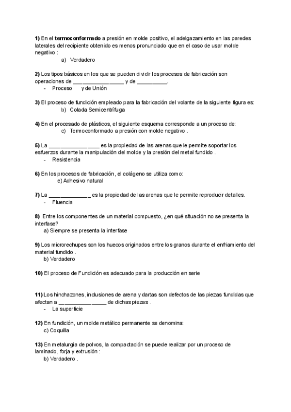 Preguntas y sus soluciones de Un parcial de Ingeniería de Fabricación