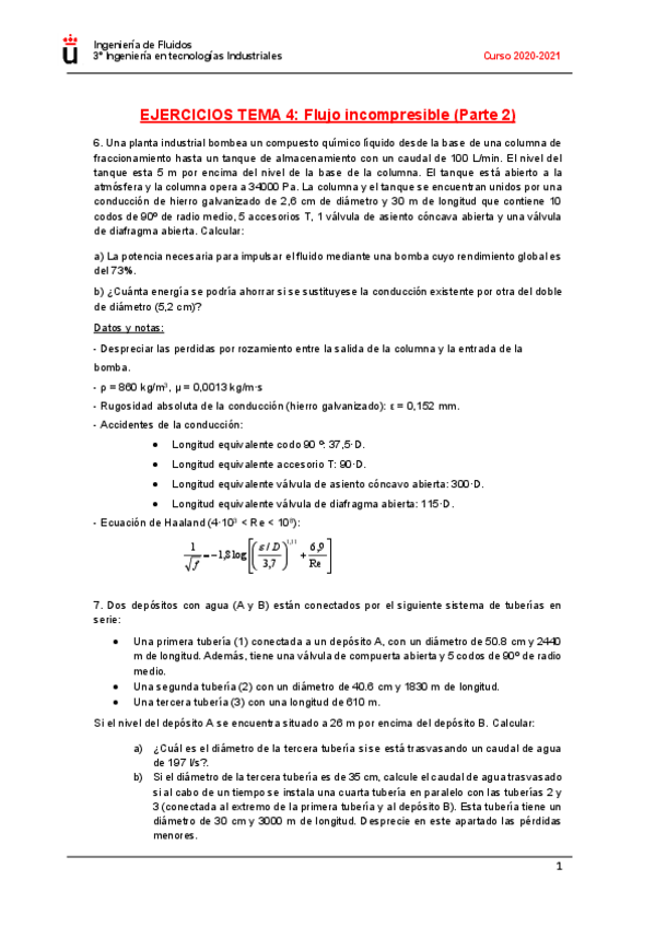 He publicado nuevos ejercicios de 3º Ingeniería de Fluidos: Ejercicios-T78.pdf