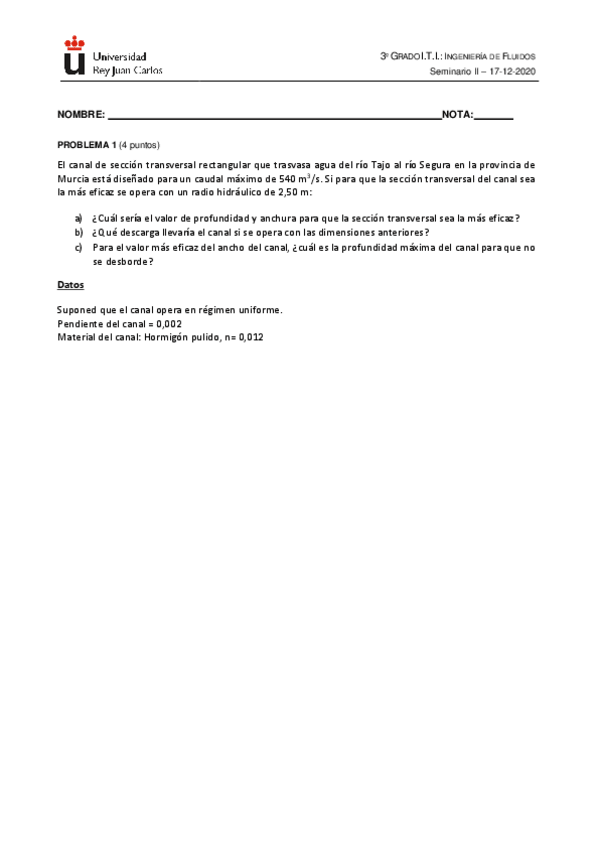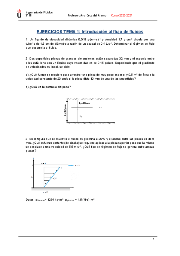 He publicado nuevos ejercicios de 3º Ingeniería de Fluidos: Seminarios IF, ITI, URJC.