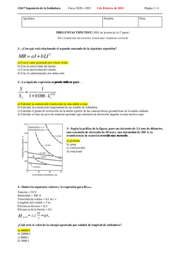 He publicado nuevos examenes de 3º INGENIERÍA DE LA SOLDADURA: Examen-2019-Resuelto.pdf