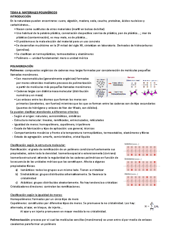 He publicado nuevos apuntes de 2º Ingeniería de Materiales I: Tema-6-Resumen-Materiales-Polimericos.pdf