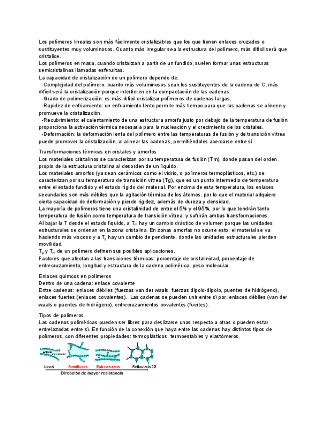 Resumen de materiales poliméricos para el segundo parcial de ingeniería de materiales.