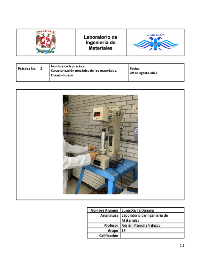 Ingeniería de Materiales Laboratorio