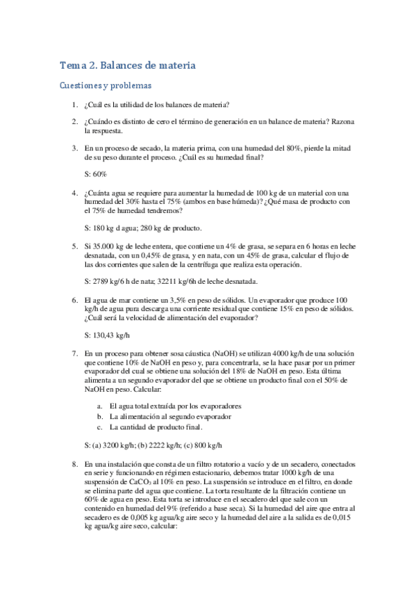 He publicado nuevos ejercicios de 2º Ingeniería de procesos biotecnológicos I: Tema 2 Procesos I, Cuestiones y problemas.pdf