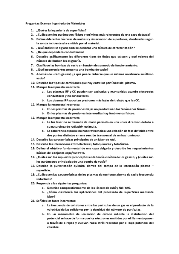 He publicado nuevos examenes de 4º Ingeniería de Superficies: Preguntas-Examen-INGSUP.pdf