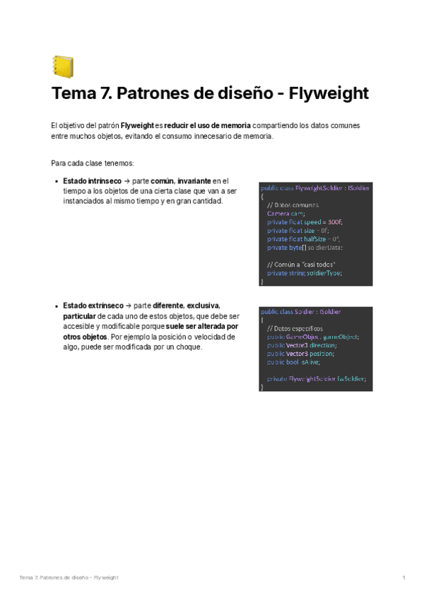 He publicado nuevos apuntes de 3º Ingeniería de videojuegos: Apuntes - Tema 7. Patrones - Flyweight.pdf