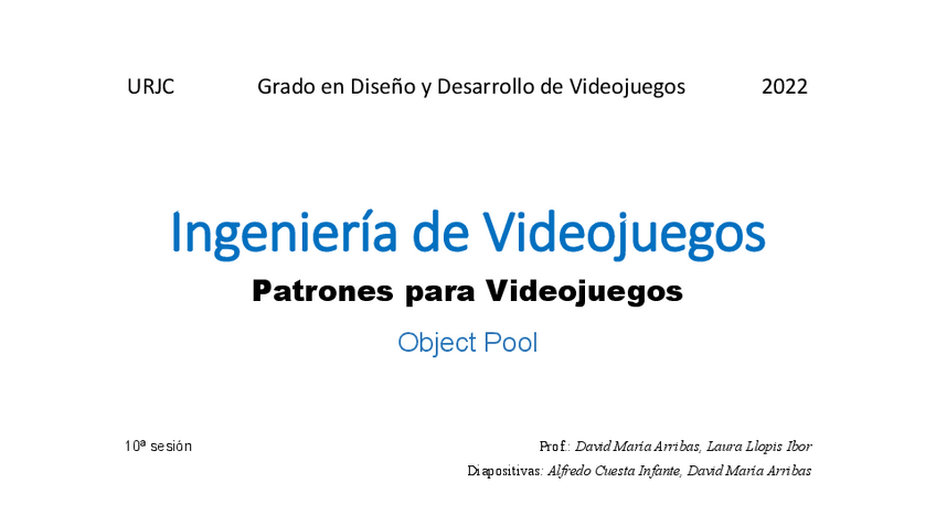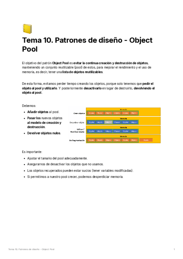 He publicado nuevos apuntes de 3º Ingeniería de videojuegos: Apuntes - Tema 10. Patrones - Object Pool.pdf