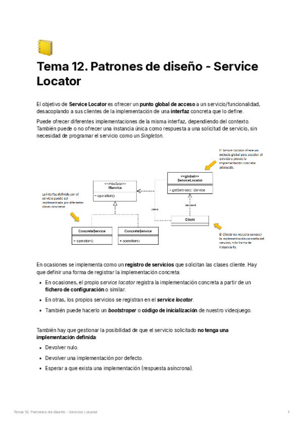 He publicado nuevos apuntes de 3º Ingeniería de videojuegos: Apuntes - Tema 12. Patrones - Service Locator.pdf