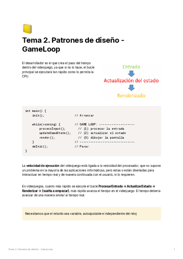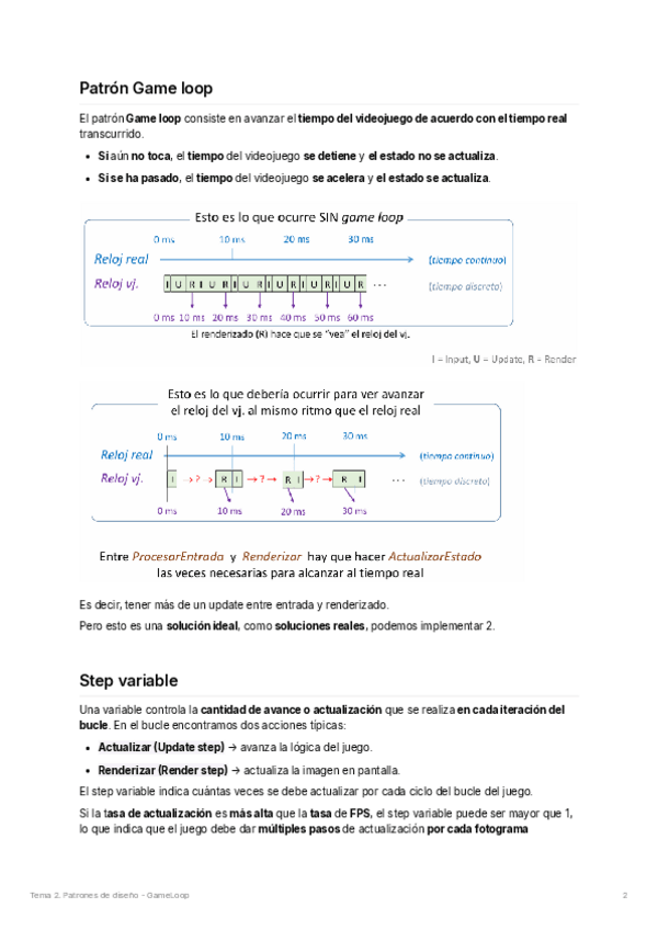 He publicado nuevos apuntes de 3º Ingeniería de videojuegos: 02-Patrones-GameLoop.pdf