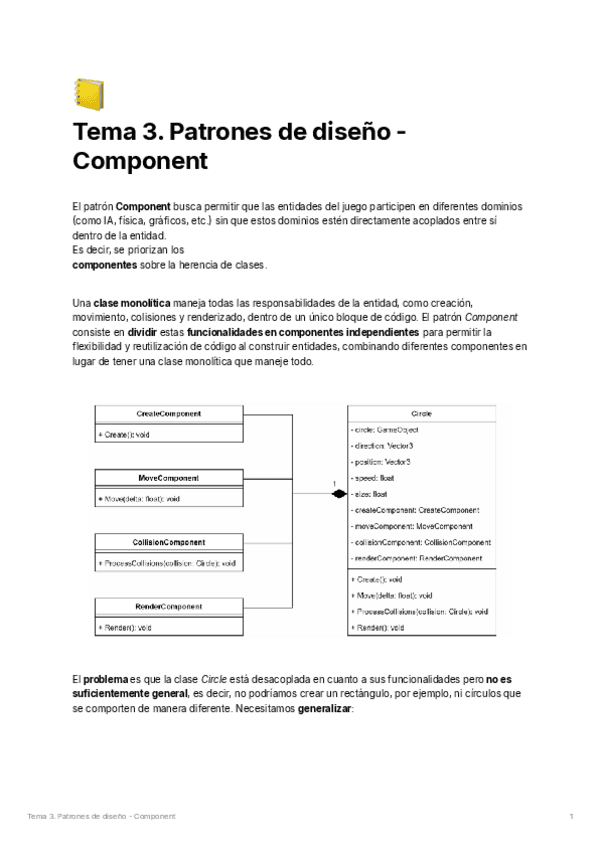 He publicado nuevos apuntes de 3º Ingeniería de videojuegos: Apuntes - Tema 3. Patrones - Component.pdf