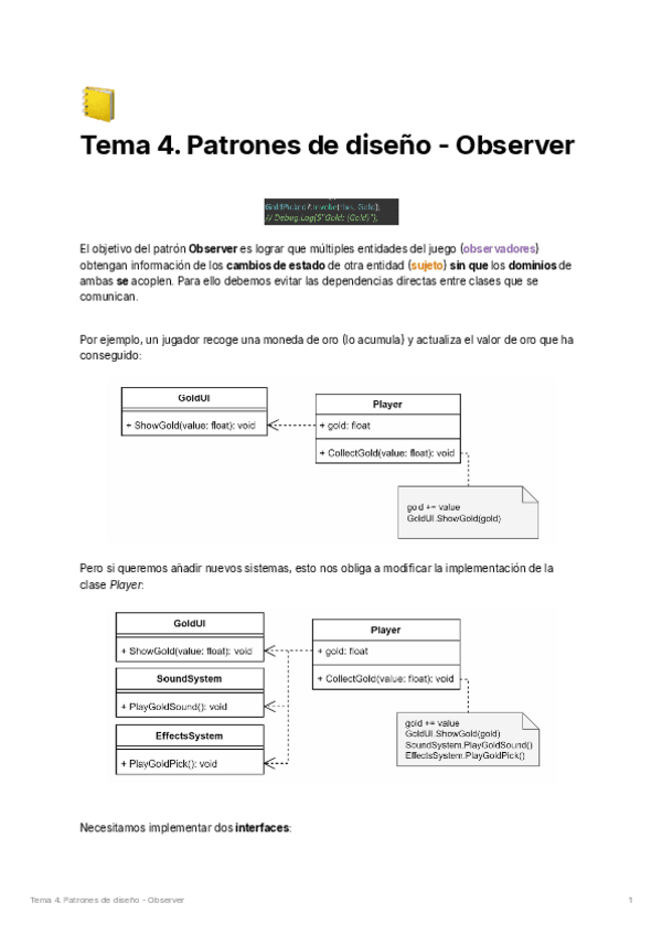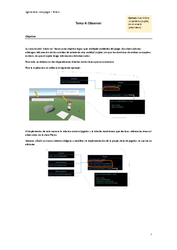 He publicado nuevos apuntes de 3º Ingeniería de videojuegos: Apuntes - Tema 4. Patrones - Observer.pdf