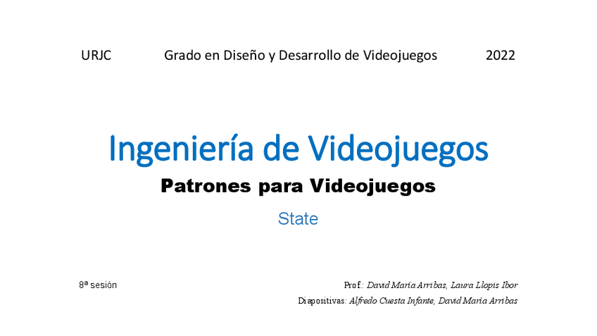 He publicado nuevos apuntes de 3º Ingeniería de videojuegos: Apuntes - Tema 5. Patrones - State.pdf