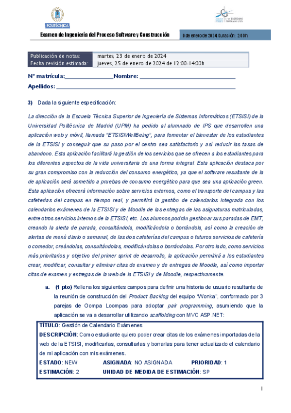 He publicado nuevos examenes de 3º Ingeniería del Proceso Software y Construcción: EXAMENIPSEnero2024Solucion.pdf
