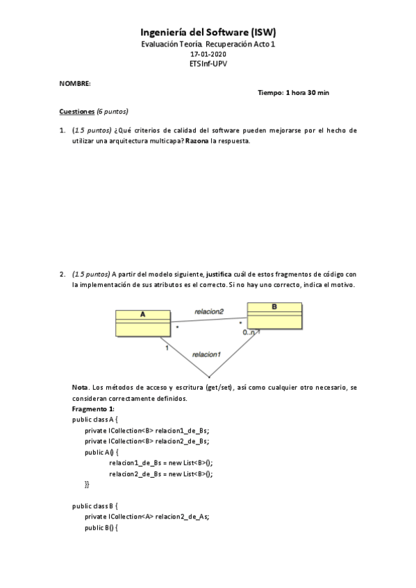He publicado nuevos examenes de 3º Ingeniería del Software: EXAMENES 2019-2021