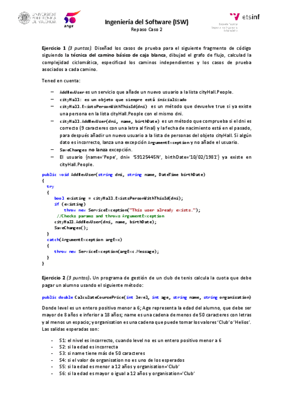 He publicado nuevos ejercicios de 3º Ingeniería del Software: Ejercicios-tema-5-ISW-RESUELTO.pdf