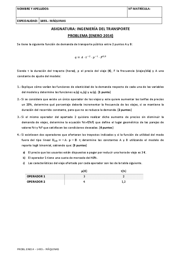 He publicado nuevos ejercicios de 1º Ingeniería del Transporte: Ejercicios