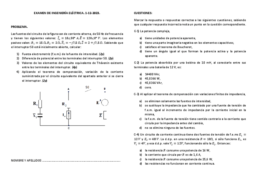 Exámenes de Ingeniería Eléctrica de otros años resueltos en español