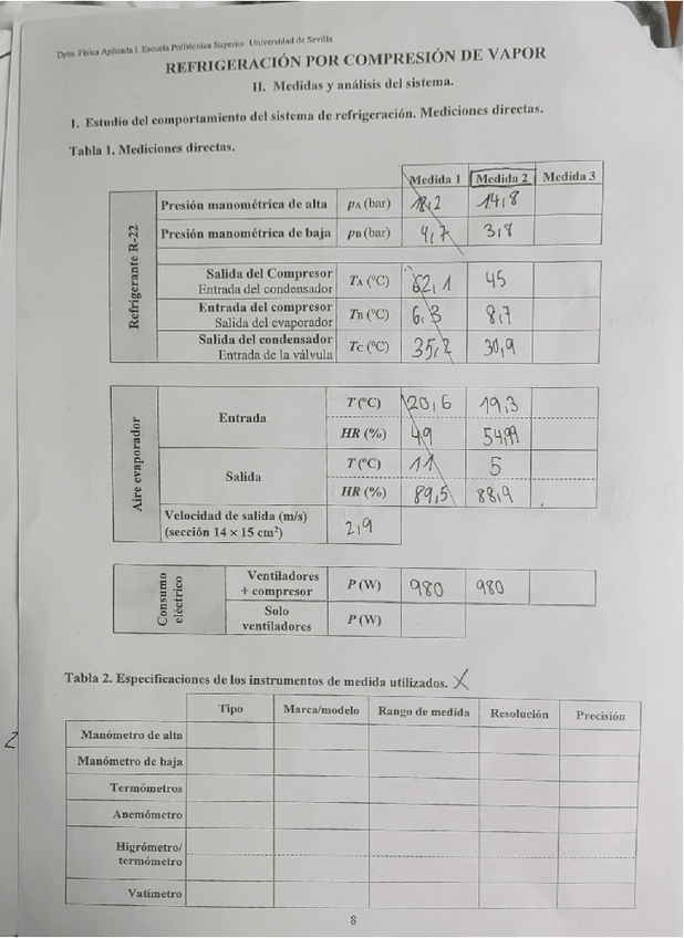 He publicado nuevos practicas de 2º Ingeniería energética, Transmisión de Calor y Fluidos: Práctica Refrigeración CORREGIDA.pdf