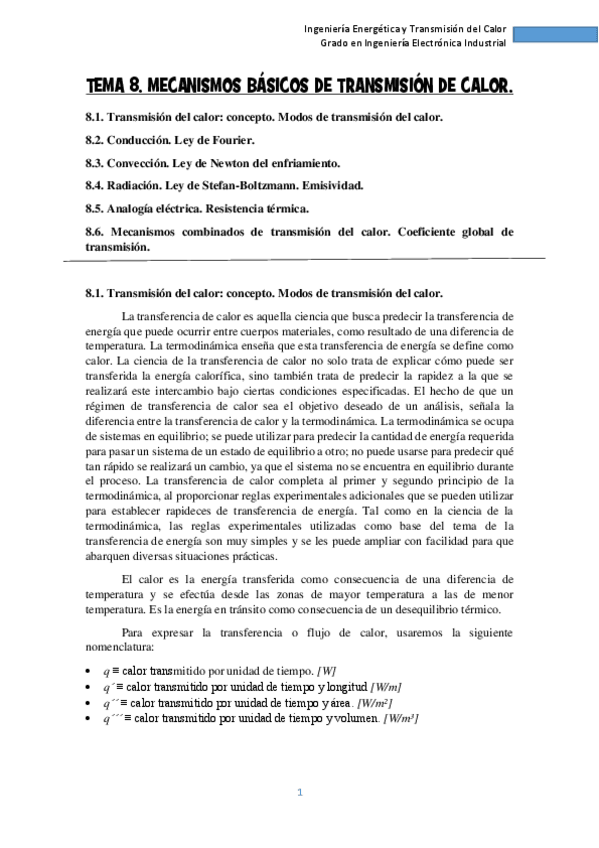 Tema 8 - Mecanismos básicos de transmisión de calor - Apuntes.pdf