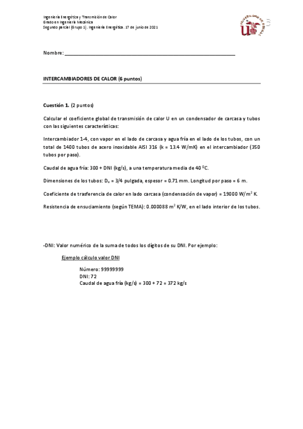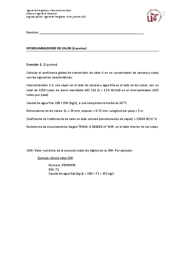 He publicado nuevos examenes de 2º Ingeniería energética y Transmisión de Calor: EXAMEN-PARCIAL-CALOR-19-20.pdf