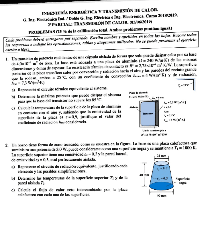 He publicado nuevos examenes de 2º Ingeniería energética y Transmisión de Calor: Parcial-1-2018-19.pdf