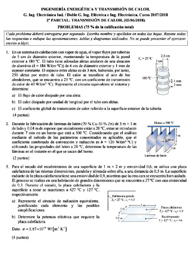 He publicado nuevos examenes de 2º Ingeniería energética y Transmisión de Calor: 1P-2017-18.pdf