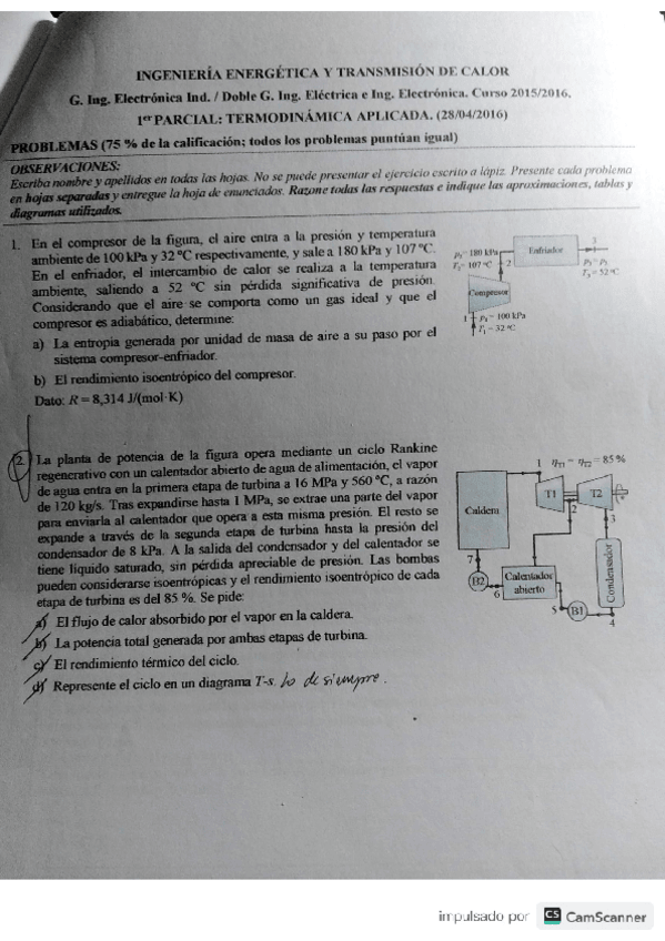 He publicado nuevos examenes de 2º Ingeniería energética y Transmisión de Calor: CICLOS-DE-RANKINE-1oPARCIAL.pdf