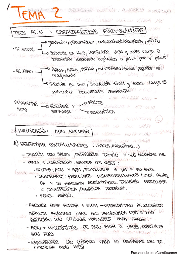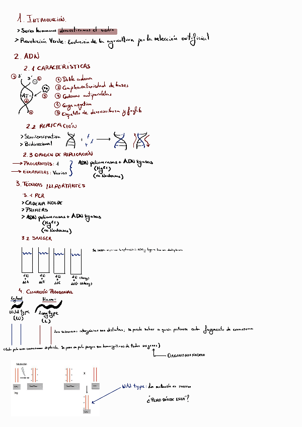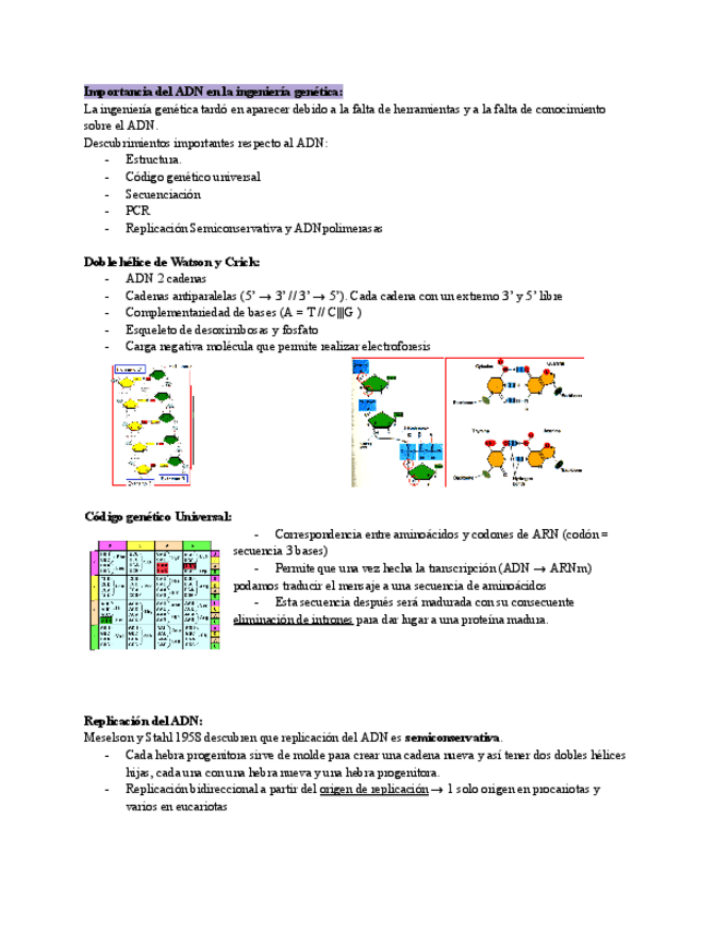 Apuntes del Tema 2 con imágenes de presentaciones de clase. La última parte del tema (secuenciación método Sanger) no está incluida porque no entra en el examen