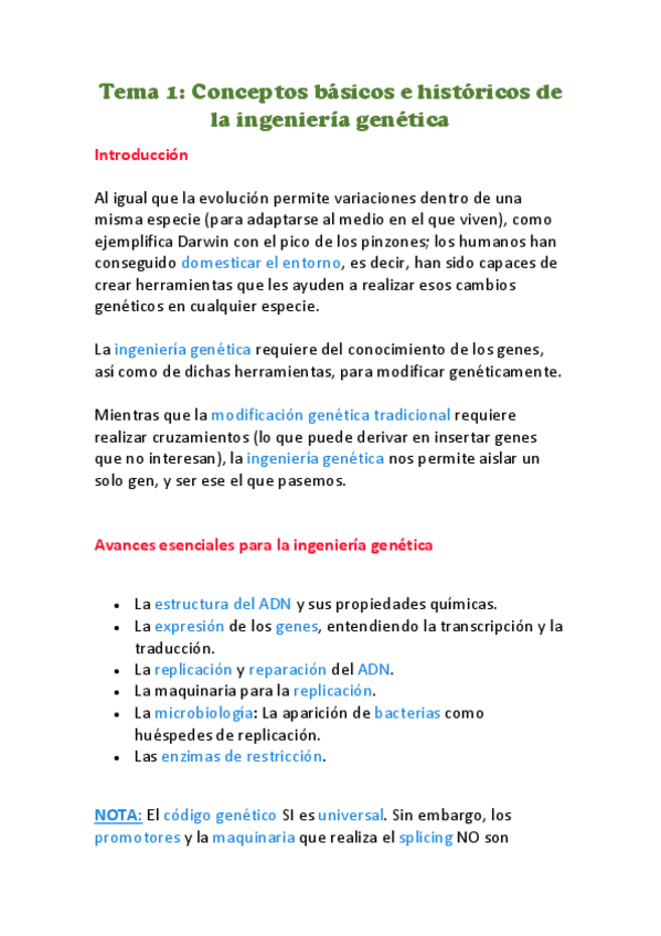 Apuntes ingeniería genética. 9,5 en la asignatura