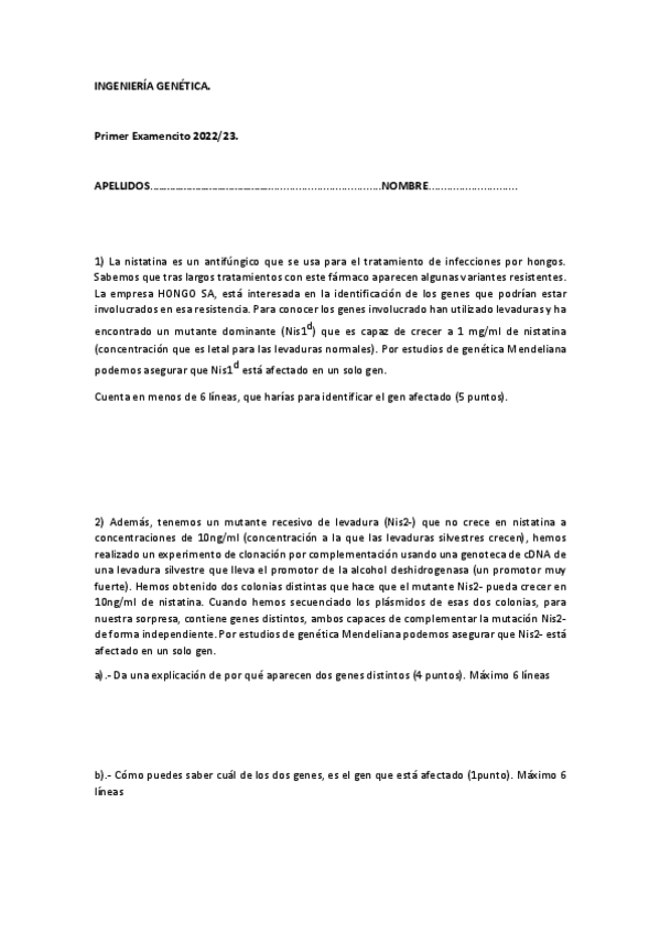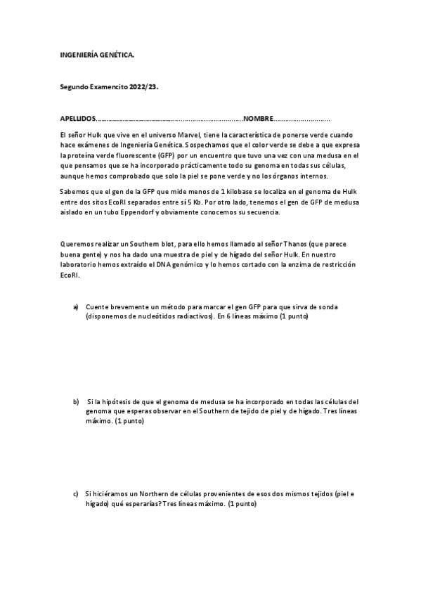 He publicado nuevos examenes de 2º Ingeniería Genética: 3o-Examencito-Resuelto.pdf