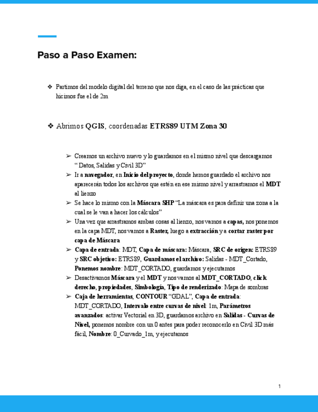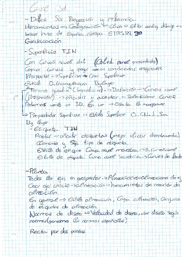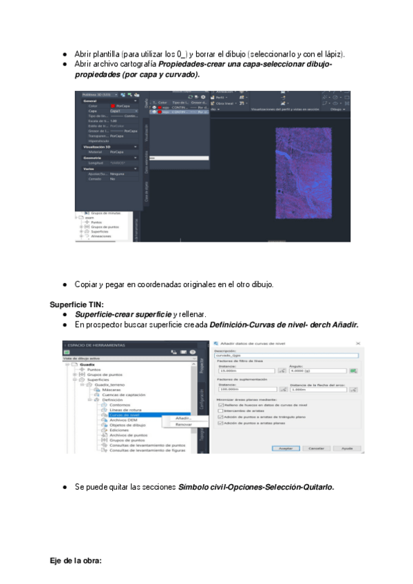 Apuntes paso a paso CIVIL 3D con posibles preguntas (hasta antes perfiles transversales)
