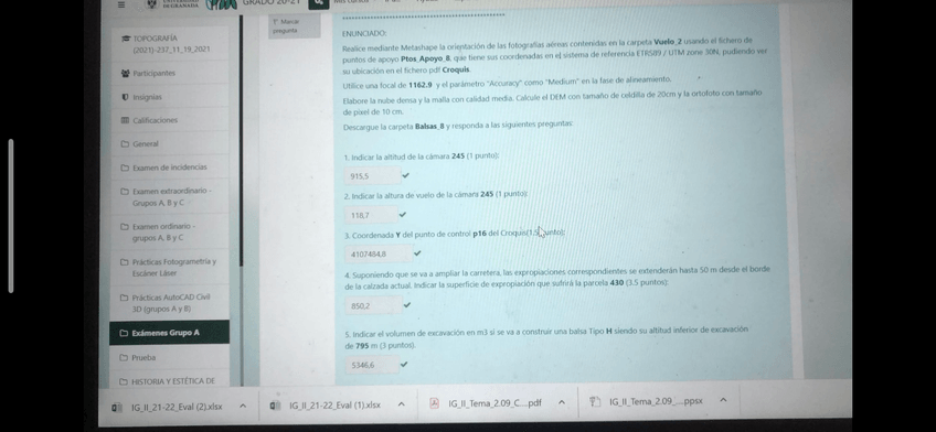 He publicado nuevos examenes de 2º Ingeniería Geomática, Sitemas de Información Geográfic Ay Topografía: Examen Metashape