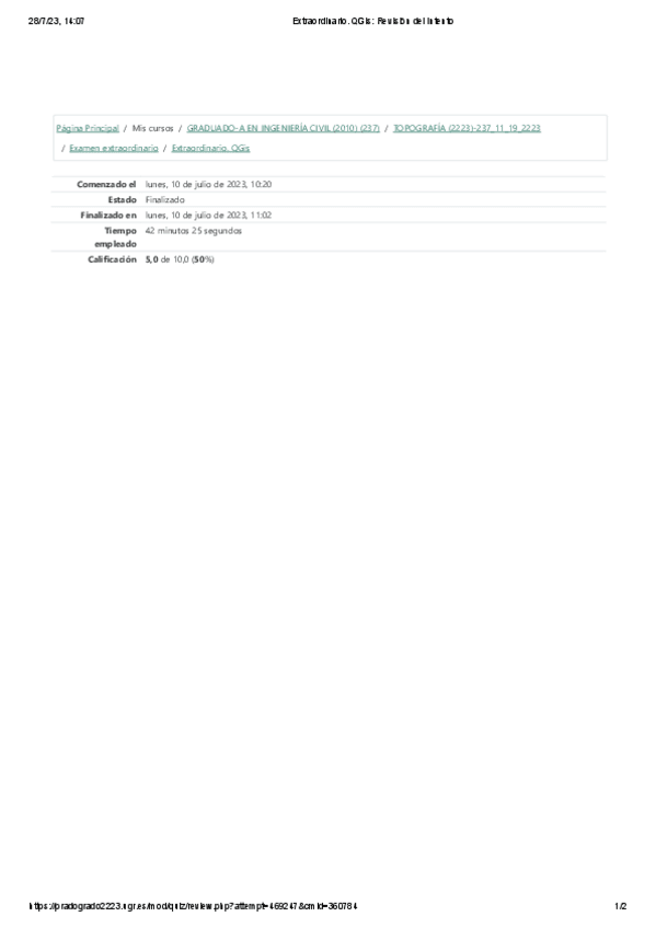 He publicado nuevos examenes de 2º Ingeniería Geomática, Sitemas de Información Geográfic Ay Topografía: examen extraordinario 2023