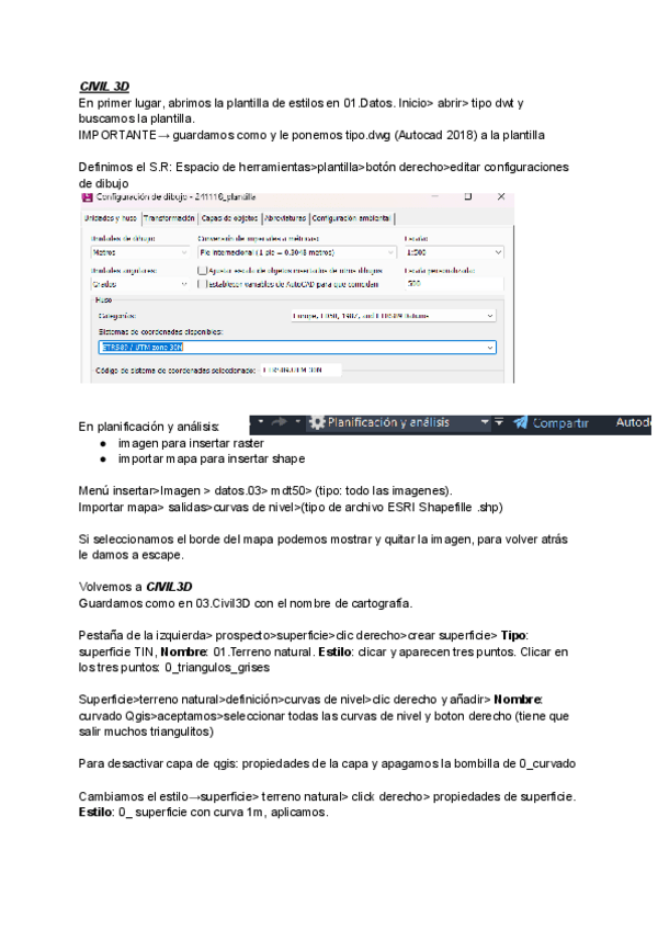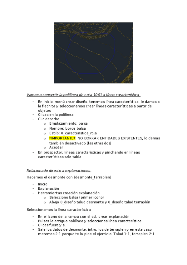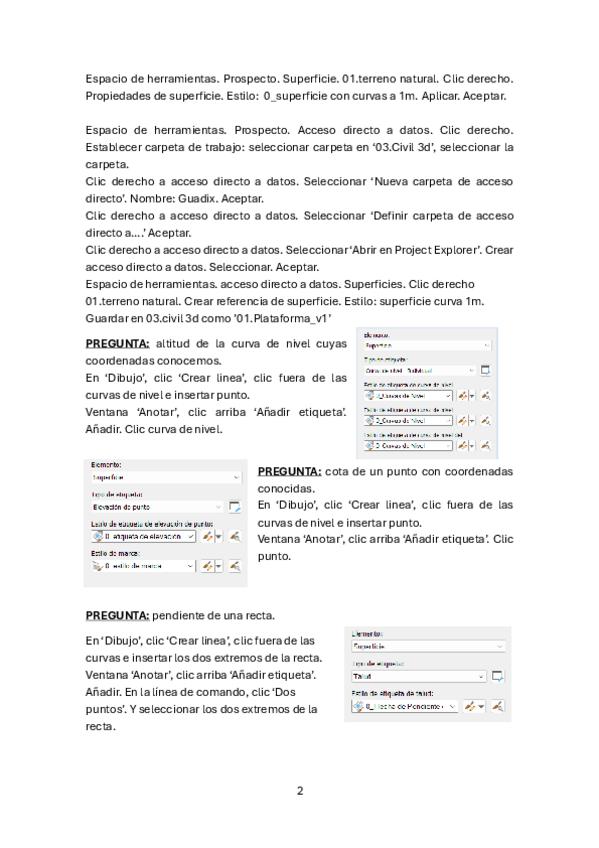 Apuntes paso a paso CIVIL 3D con posibles preguntas (hasta antes perfiles transversales)