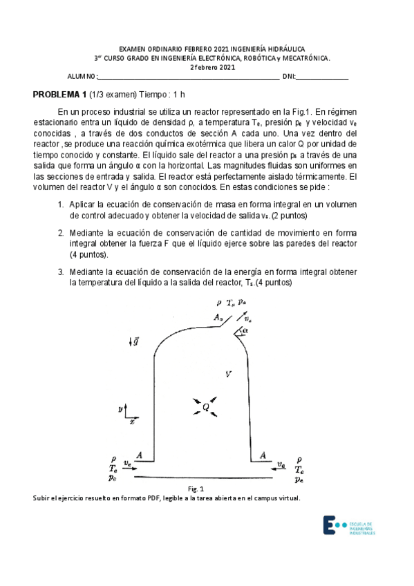 He publicado nuevos apuntes de 3º Ingeniería Hidráulica: EXAMEN RESUELTO 2019
