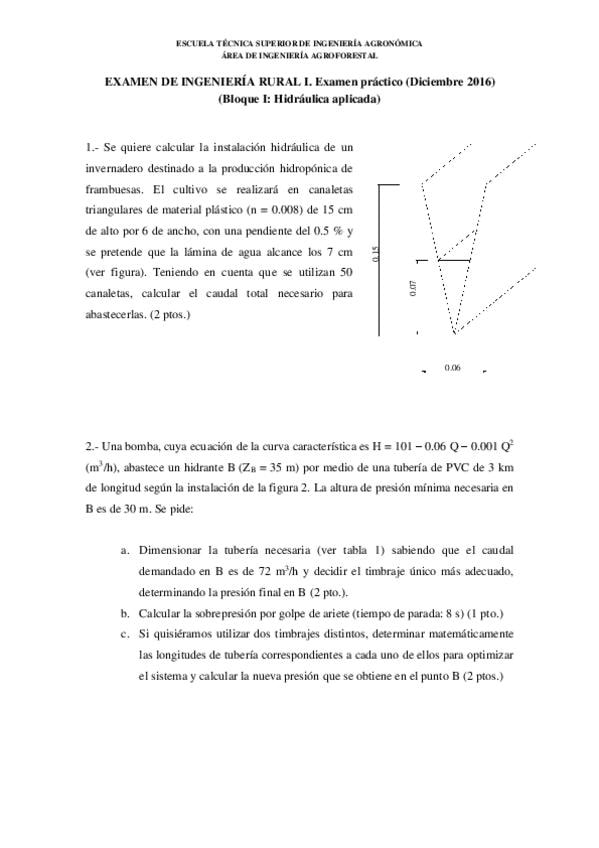 He publicado nuevos examenes de 2º Ingeniería Rural I: EXAMEN-HIDRAULICA-JULIO-2023.pdf