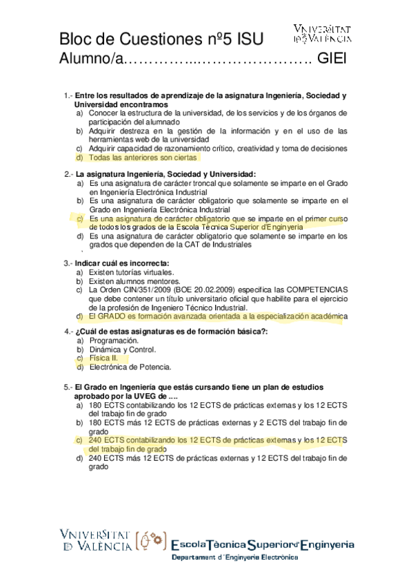 He publicado nuevos examenes de 1º Ingeniería, Sociedad y Universidad: Tests ISU (DIE) corregidos