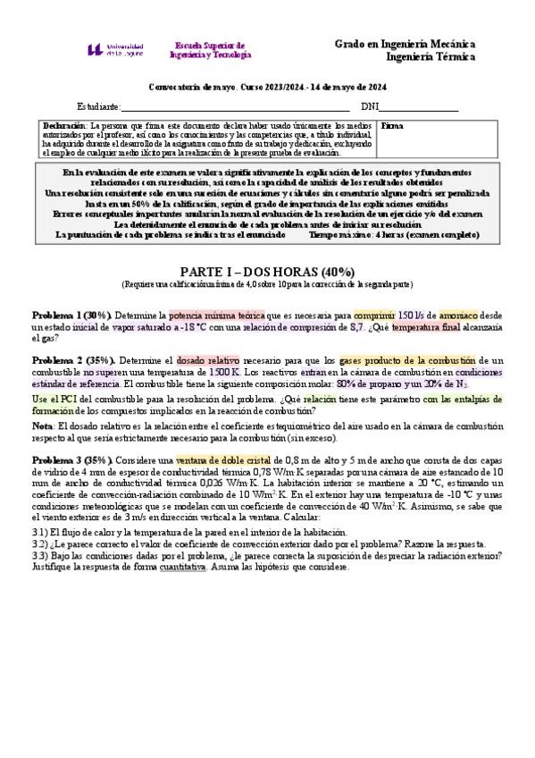 He publicado nuevos examenes de 3º Ingeniería Térmica: Examen-febrero-2026.pdf