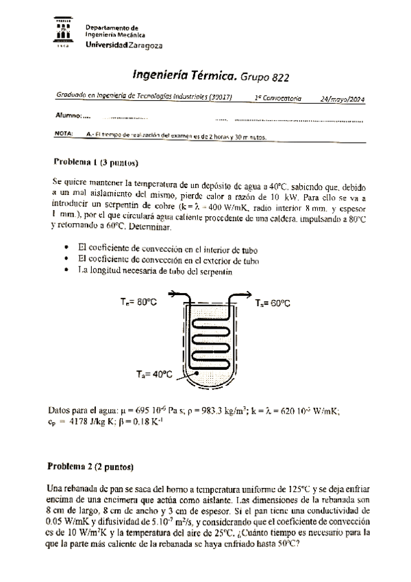 He publicado nuevos examenes de 2º Ingeniería Térmica: Examen-ITER-Julio2024.pdf