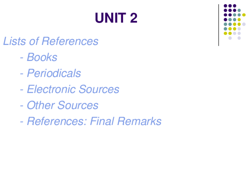 He publicado nuevos apuntes de 1º Inglés Académico: UNIT-2Lists-of-references.pdf
