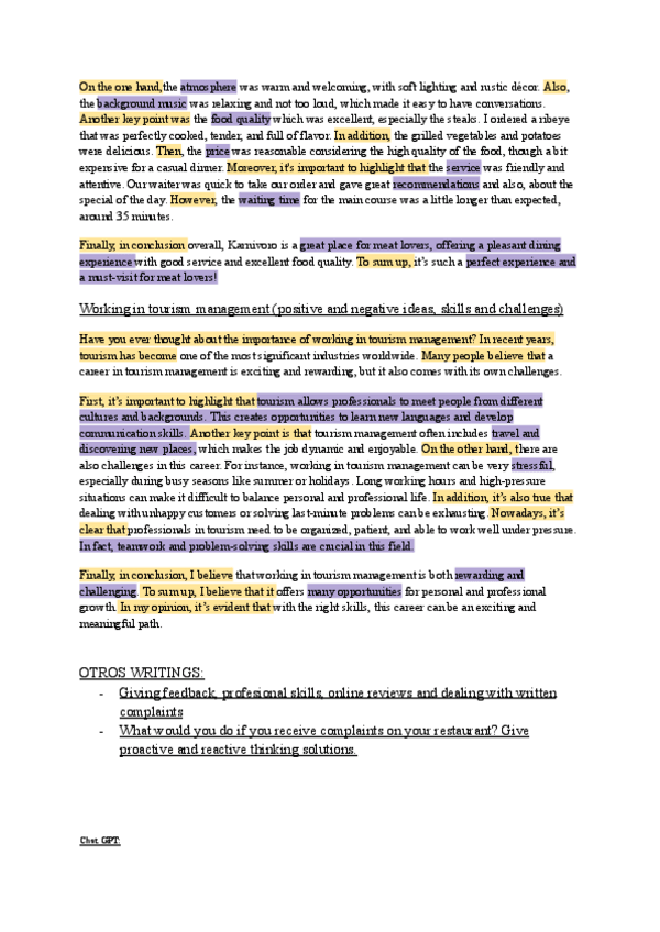 Ejemplos de writings+frases claves