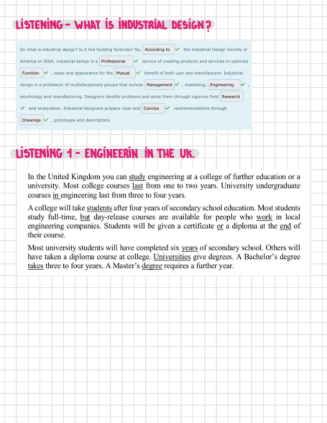He publicado nuevos apuntes de 3º Inglés Aplicado al Diseño Industrial: LISTENINGS.pdf